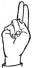 На ћирилици написано МАРТА ТРИКОШАНИН састоји се из 15 слова [?]. Исписано ћириличном једноручном азбуком за глувонеме: